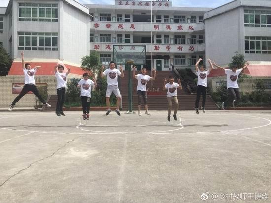王博维给学生们拍的“跳跃篇”合影