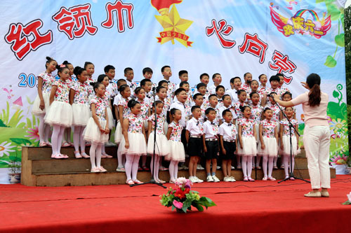 红领巾飘向宽阔的操场,“红领巾心向党”六一庆祝活动在动听的旋律中开始啦!学校先表彰了一批优秀学生,在学生中树立标兵,号召全体同学争当楷模,听党的话,紧跟党走。