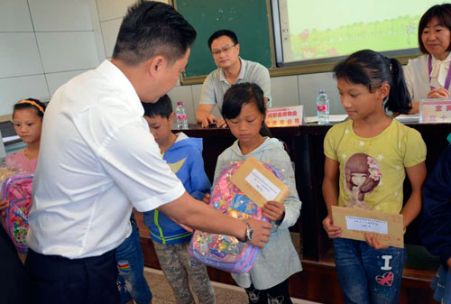 四川新闻网宜宾6月2日讯(张阳)“6·1”国际儿童节是属于所有儿童的节日,他们理应获得所有人的祝福并健康快乐地成长,而在宗场乡中心校,还有这样一些孩子,他们或身患疾病、或因家庭贫困、甚至是父母不幸亡故而过早地承担起了生活的重担和磨难,6月1日这天,带着深深的关爱和社会责任,宜宾市红十字会、翠屏区红十字会携手成都金房物业有限公司宜宾分公司的职工们,到翠屏区宗场乡中心校亲切看望了14位贫困学子,为他们每人送去了1000元慰问金和书包文具等节日礼物。