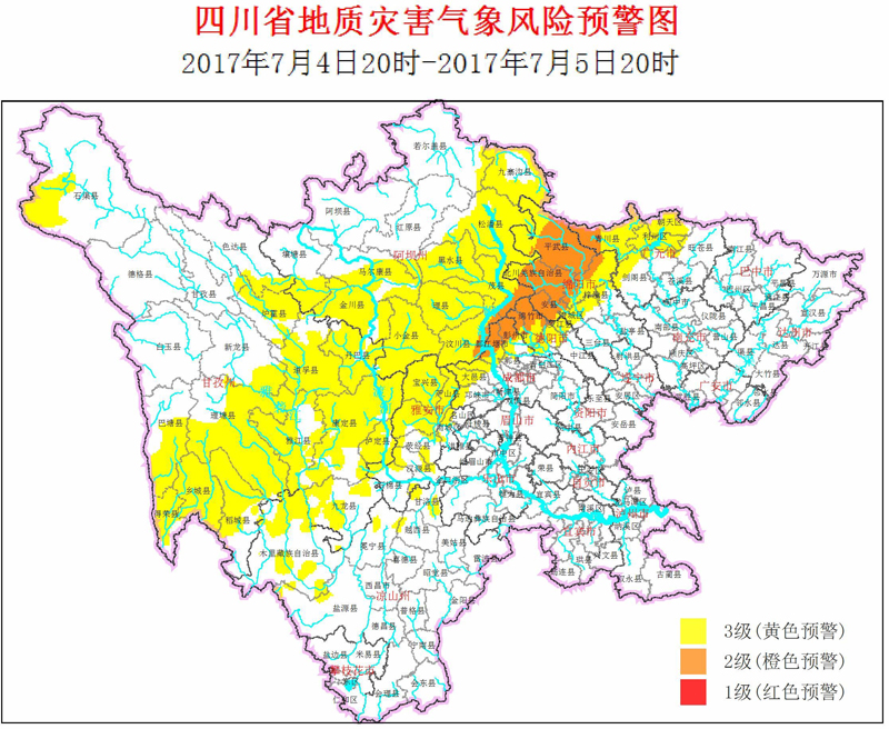 四川新闻网成都7月4日讯(记者 雷兹)7月4日下午,四川省地质灾害应急指挥部办公室发布全省地质灾害气象风险预警,结合四川省气象台天气预报情况,7月4日20时至7月5日20时,成都市崇州市、德阳市旌阳区、绵阳市涪城区等地局部的地质灾害气象风险为黄色预警,成都市都江堰市、德阳市什邡市、绵阳市安州区等地局部的地质灾害气象风险为橙色预警。