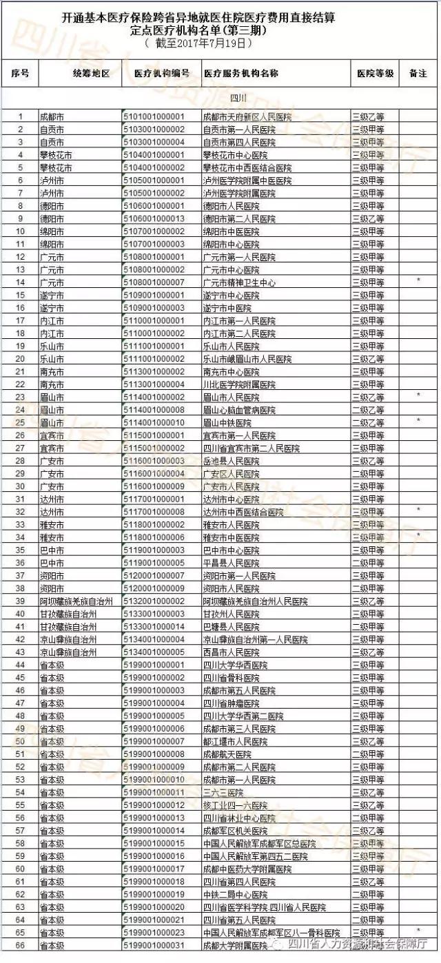 三是四川的开通情况,截至目前,四川全省接入国家异地就医结算系统,并有66家定点医疗机构开通跨省异地就医住院费用直接结算!