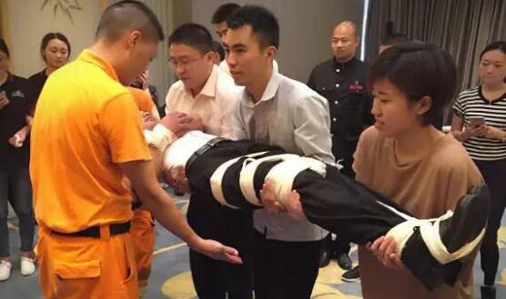 此次培训由宜宾卫校高级讲师、副教授吴坚主讲,宜宾市红十字应急救援队的4名救护师资也参与了辅助教学,第一天的理论课程讲解,学员们先后学习了现场救护基本概念、徒手心肺复苏术、创伤救护四项基本技术(止血、包扎、固定、搬运)等技能知识,同时针对酒店行业特点,就地震、火灾等灾害的逃生避险和自救互救进行了学习。第二天的实际操作培训中,41位分组在老师的带领下进行了心肺复苏,体外除颤仪的正确使用和包扎搬运等训练。同时,市红十字会还向学员普及了新修订的《中国红十字会法》、红十字运动起源和基本原则、造血干细胞捐献等知识。