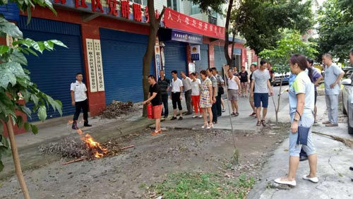 授课教官以图文并茂、新闻报道、事故分析、现场说法的方式,播放讲解了近年发生的多起重大火灾事故以及近期发生的一些案例视频,触目惊心的画面震撼了所有参会人员,大家深刻认识到了“隐患险于明火、防范胜于救灾”的重要性。教官结合在工作和生活中用电、用气、用火的知识,介绍了事故发生的原由及所造成的危害,详细讲解了发生火灾后的自防、自救、逃生技能,并按种类、功能、用途介绍了不同的灭火器。最后,培训教官带领与会人员在空地上进行了消防器材使用演练。
