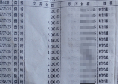 以银行卡被盗刷为由报警后,朱英根据民警的提示,到银行打印了近期的交易明细清单。清单显示,5月21日至8月5日,银行卡内4.9万余元通过“财付通”转出,共58笔,少则11.4元,多则4000元。但由于平时并未接触过财付通,她连财付通是什么都不知道。