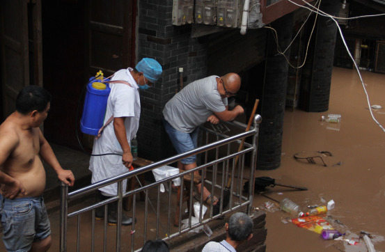 截至27日18时,横江镇中心卫生院共派出消杀人员100余人次,对20000余平方米涉水农户家中、公厕、垃圾池等区域进行消杀。同时还加强环境卫生宣传,积极向广大居民群众宣传暴雨洪涝后饮用水、食品、环境卫生和传染病防治等知识,发放传染病防治宣传画200多张。(县卫计局供图)