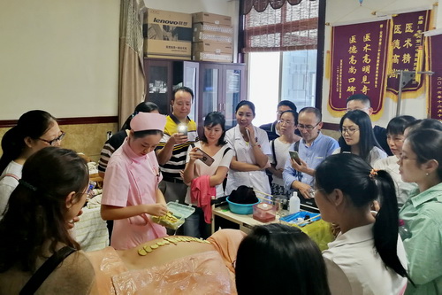 理论知识讲授完毕后,宜宾市第二中医医院又精心安排具有丰富临床经验、操作娴熟的资深中医师现场操作演练相关中医技术,学员们认真观摩了中医技术操作,深感受益匪浅,纷纷表示祖国医学博大精深,充满魅力,激发了他们学习中医、了解中医的兴趣。他们对此次培训感到非常满意。
