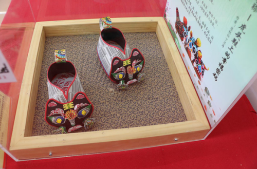 《虎头鞋上的幸福密码》:从民间布艺虎头鞋的寓意、造型及色彩中汲取养料,运用废弃的彩票,演绎现代审美与民间工艺的融合,让中华优秀文化艺术得以传承,并在传承中创新。