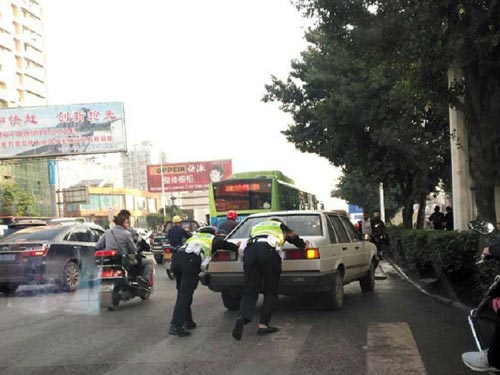 宜宾县公安交警热心推车