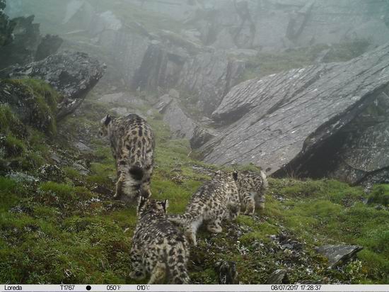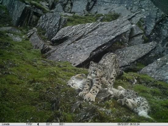 据了解,红外相机拍摄到的视频共有五段,其中三段是在今年6月的其中3天拍到的,地点位于点缀着零星小花的高山草甸上,豹妈妈带着三只小雪豹缓缓的走入镜头,三只小豹子走走停停好奇的东张希望。等到豹妈妈离去觅食时,三只小豹子乖乖的坐在草地上玩耍。据相相关专家判断,这三只小豹子约3个月左右大,正是活泼好奇的年纪。