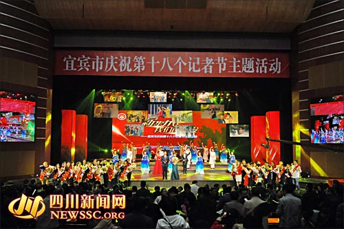 四川新闻网宜宾11月8日讯(记者 周瑜原 摄影报道)“美好的时代需要我们来颂扬,壮丽的事业等待我们去开创。衷心祝福新闻界的朋友们节日快乐!”宜宾市委常委、市委宣传部部长李敏说。今日是第18个记者节,11月7日下午,由宜宾市委宣传部、市文广新局、市新闻工作者协会主办的“新时代 我们再出发”宜宾市庆祝第18个记者节主题活动在酒都剧场举行。现场表彰优秀编辑记者36人,同时还对“优秀播音主持”、“优秀栏目”、“优秀新媒体平台”等人员进行表彰。
