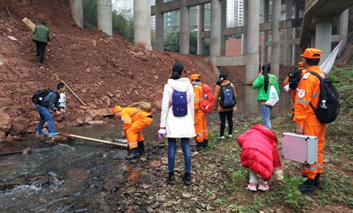 12月3日,救援队组织新老队员12人开展了一天的户外拉练和急救演练。早上8:30,队伍从南岸财富广场集合,途径七星山、黑塔、佛现山,于17:30顺利返回南岸。沿路上,钟队长根据实际情况临时设定科目和场景,让队员们进行实战演习,包括了运用铲式担架、折叠担架在山地运送伤员,对出血、骨折的紧急处理,救援绳索的运用、渡河等。大家在模拟情景中轮流扮演“伤员”和急救人员,自发思考,相互协作,运用身上有限的设备器材进行妥善处理,对急救技能又有了再巩固再提高。一天高强度的学习下来,参训队员都感到虽然很疲惫,但这样的活动形式非常实用。钟队长表示,今后救援队还将不定期开展类似的野外拉练和急救演练,达到学以致用、强化队伍的目的。(宜宾市会红会供图)
