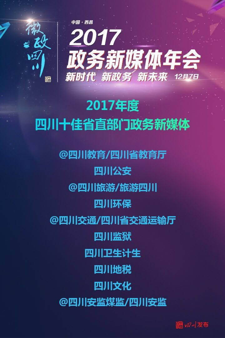 2017年度,哪些政务新媒体账号在坚持权威发声、为民服务、回应关切等方面表现出色?又有哪些市州的政务新媒体在矩阵建设中起着中流砥柱作用?用指尖维护着一座城市的“政能量”?它们是谁?记者从今日(7日)举办的“微政四川--2017政务新媒体年会”上获悉,“2017年度四川十佳省直部门和市(州)政务新媒体”账号出炉,这些政务新媒体因表现优异上榜,快为他们点赞↓↓