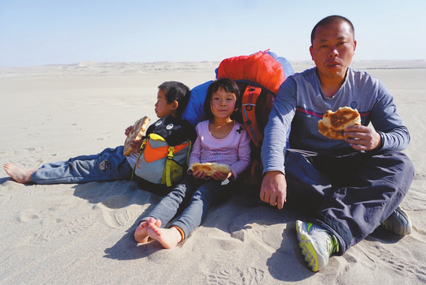 量力而行。潘土丰和袁端不打算强迫孩子们再继续往前走,但是,即使要打道回府,也要自己走回去。不帮忙,是两人一贯的态度。走累了,坐下休息,休息好了,背上包继续走。第六天时,孩子们自己走出了沙漠。