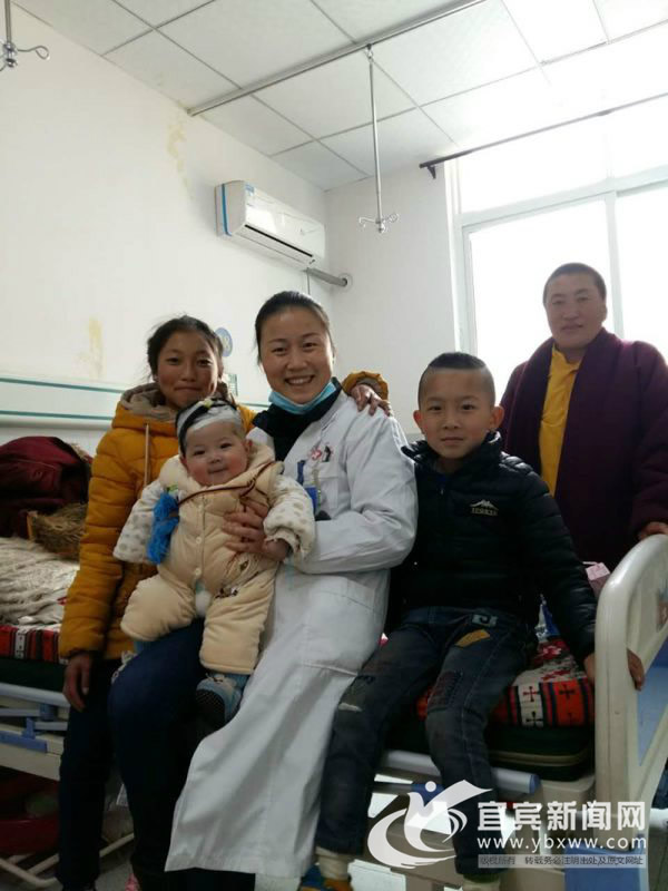 李敏医生与患儿合影。(图片由宜宾市第一人民医院提供。)