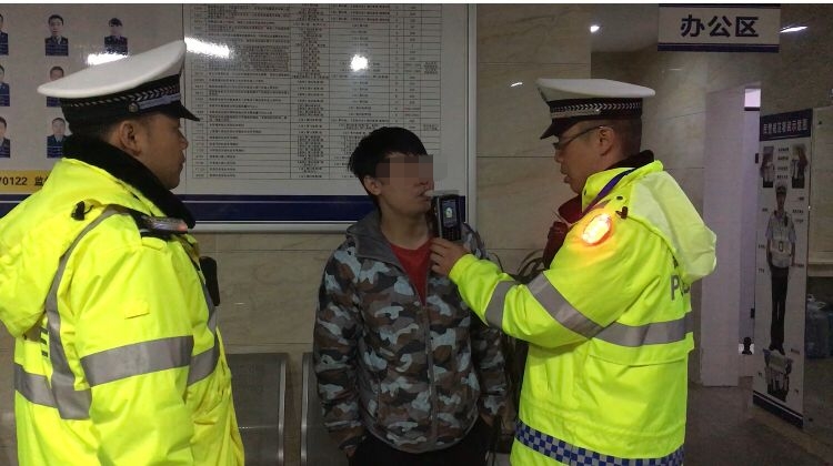 王某正在进行酒精检测