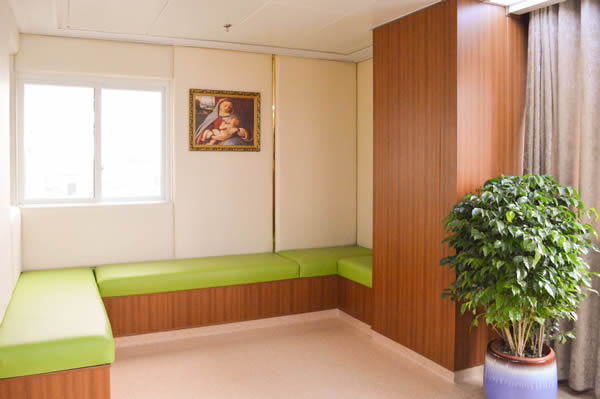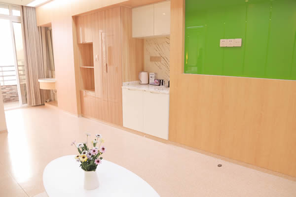 每间房间都属于精装修套间,整个病区色彩清新,光线柔和极具现代化,不仅环境温馨,配套设施也相当齐全。设有营养间室,提供微波炉、电磁炉等等厨房电器,家属可在此加热饭菜、煲汤等。婴儿洗澡室外还提供舒适的家属等待区,这样孩子在里面洗澡时,爸爸可以不再站着排队了。同时,这里装修设计也别具匠心,很多人性化设计,内饰均选用防火、无味、无毒、无辐射的木板等材料,病房在2017年10月已完工,通过除甲醛等净化措施后,医院还聘请了国家级专业机构进行验收,合格后才正式投入使用。