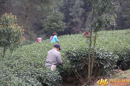 川红集团红茶基地坐落在宜宾县永兴镇中元村境内,这两天,公司基地的茶山上呈现出一派繁忙的景象,村民三年前种植了1000多亩茶树比以往的茶树发芽提前了30天,惊蛰期间茶叶迎来采摘期,这段时间也是茶农最忙碌的时候。