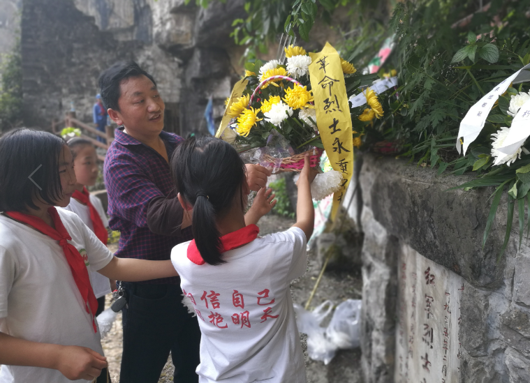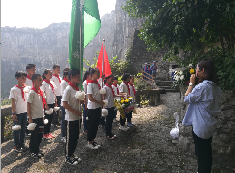 首先,少先队大队辅导员为学生们讲述了先烈英勇就义的事迹。接着,学生们向烈士敬献花篮和手工小白花,在默哀三分钟后,大队长带领大家在烈士墓前宣誓。“不负先辈厚望,奋发图强,报效祖国,做一名合格的共产主义事业接班人”的誓言响彻山谷。