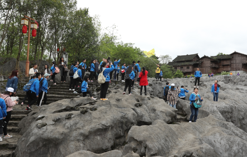学生们以班级为单位,在导游的引导下一路走一路听取介绍,了解家乡的红色文化、僰苗风情和地质公园知识,不时追问探究,或用手机拍照记录,展现了当代中学生的好学、勤学风采。
