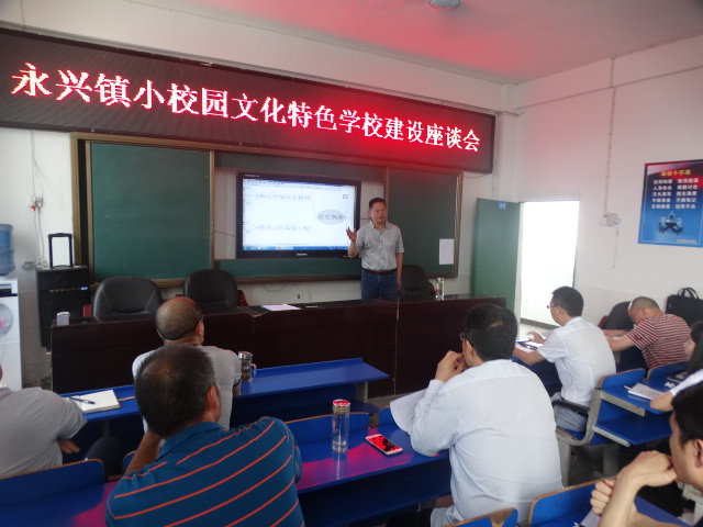 研讨会上,永兴镇小校长毛本军介绍了该校的国学启蒙、书香校园、整合阅读等特色教育活动开展情况及取得的成绩。随后与会人员针对永兴镇小的实际纷纷发言提出了很好的建议与设想,为校园文化特色建设谋篇布局。