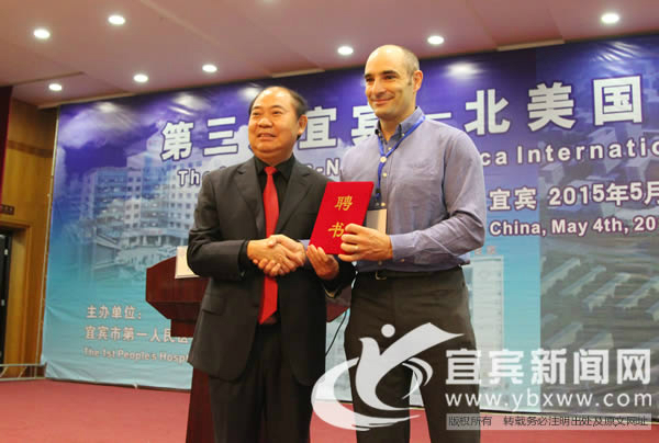 宜宾市第一人民医院聘请北美医疗专家为客座教授。 (宜宾新闻网 李清凌 摄)
