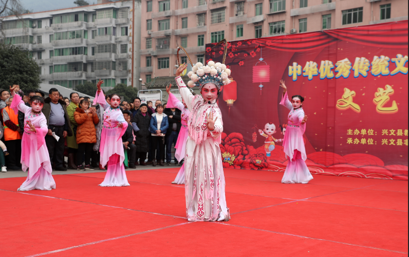此外,兴文县通过传承基地建设、非遗活态传承、非遗进校园、加快非遗文化与旅游深度融合等系列举措,有效推动民间优秀传统文化的保护利用工作。截至目前,全县共建立了“大坝高装传习所”“贾氏微刻”等10个传承基地,并定期开展各种传承活动;今年春节期间在县城、乡镇、村(社区)各级开展优秀传统文化展示活动,受众达到2万人次以上;打造大坝小学等12所民族艺术特色学校为“非物质文化遗产”传承基地学校,真实、系统、完整地记录中华优秀传统文化。(兴文县全媒体中心图)