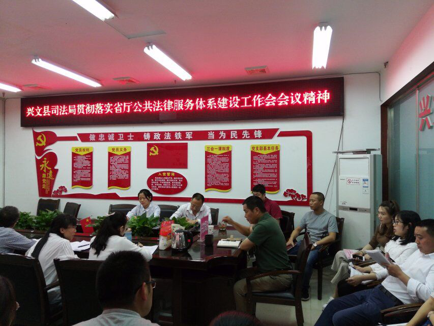 会后,党组书记、局长熊伟立即组织全县司法行政干警召开贯彻落实全省公共法律服务体系建设推进工作电视电话会会议精神会。