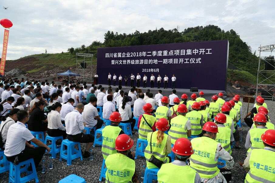 四川新闻网宜宾6月25日讯(胡先映 申勇 摄影报道)6月25日上午,四川省属企业2018年二季度重点项目集中开工暨兴文世界旅游目的地一期项目开工仪式在兴文县举行。本次集中开工项目共14个,计划总投资61.12亿元。