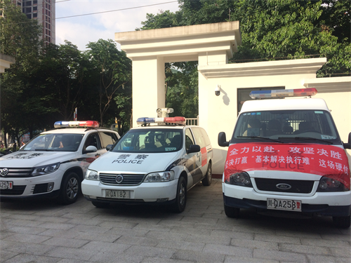 干警们精神抖擞地在法院门口集合待命,执行局副局长邓均向兴文法院党组书记、院长罗轶汇报了集中执行情况。“按预定方案开始行动!”随着罗轶院长的一声令下,各执行分队有序奔赴执行现场。