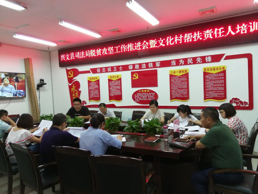 四川新闻网宜宾7月6日讯(周典 邹乾朋)为决战决胜2018年脱贫摘帽,进一步提升帮扶联系干部入户工作能力,聚焦扶贫领域腐败问题,强化监督执纪问责,7月4日下午,兴文县司法局召开脱贫攻坚工作推进会暨文化村帮扶责任人培训会。全局帮扶责任人参加了会议。