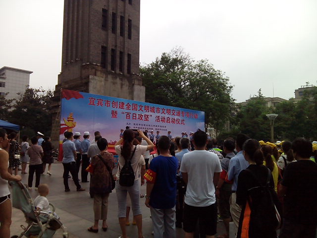 四川新闻网宜宾7月9日讯(杨竞 谢培玲 肖童予)7月6日上午10时30分,南城街道创建文明指挥部组织了10余名社区交通劝导员参加由宜宾市创建全国文明城市指挥部主办;由中共宜宾市委宣传部、宜宾市公安局、宜宾市交通运输局承办;由宜宾市公安局交警支队执行的宜宾市创建全国文明城市交通专项行动暨“百日攻坚”活动启动仪式,活动启动仪式在中山广场举行。