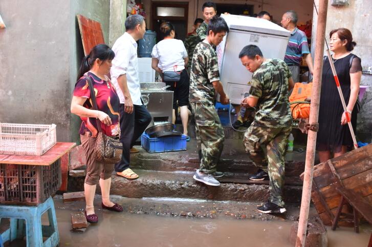12日清晨,岷江洪峰过境,超过了警戒水位,洪水倒灌进入内河,漫入渡船口社区铧厂街、正街和渡船口街,“威胁”街道商户的财产安全。灾情即是命令,该镇立即启动应急预案,组织党员干部第一时间奔赴现场,按照指挥组、救援组、转移组、劝导组的分工开展工作。宜宾县委书记丁应虎做出重要指示,副县长向华亲赴现场指挥,要求镇党委全力应对,抗洪抢险,打赢抗洪战役,力争把损失减到最低。