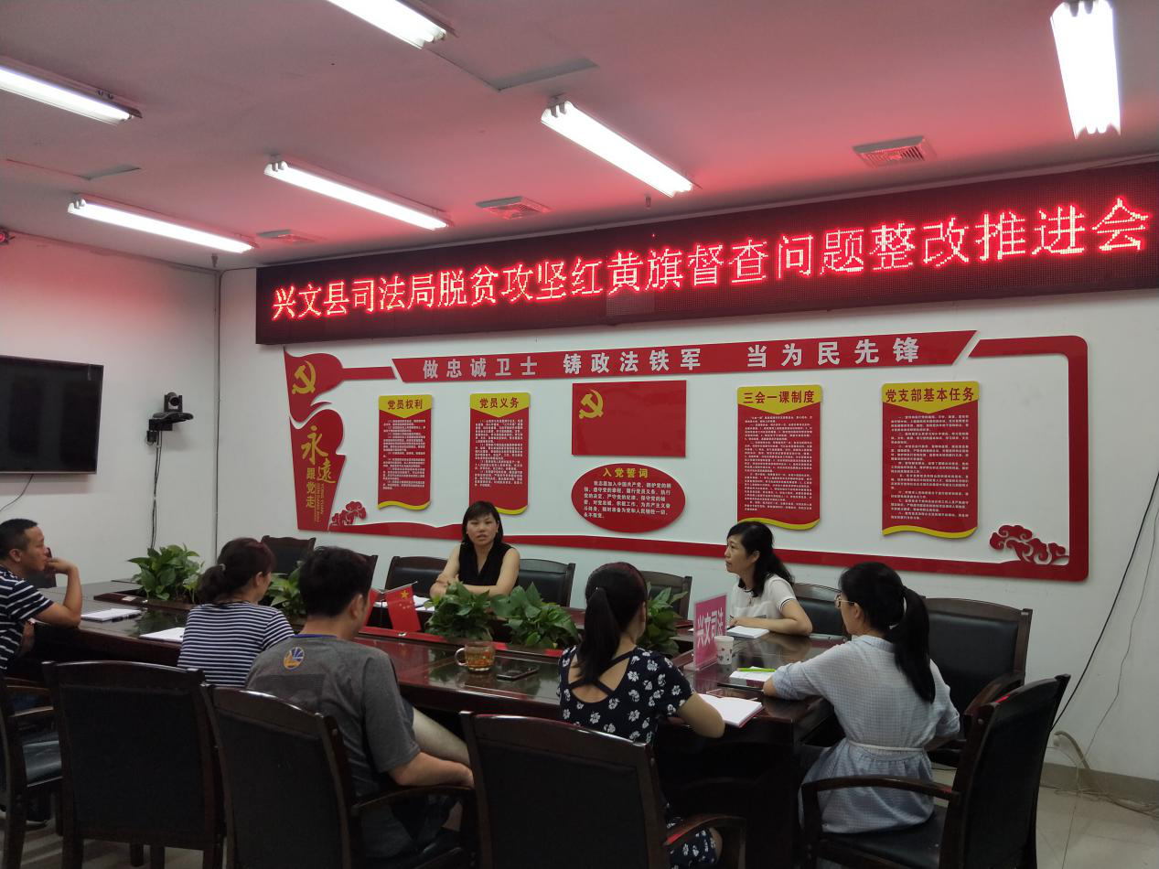 四川新闻网宜宾8月13日讯(周典 邹乾朋)为抓实脱贫攻坚工作,推动红黄旗督查问题整改,8月10日,兴文县司法局召开脱贫攻坚红黄旗督查问题整改推进会。全局中层以上干部参加了会议。