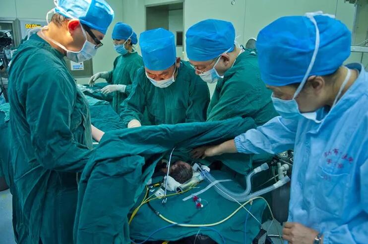 宜宾市一医院院长谢明均主刀腹裂弃婴手术。