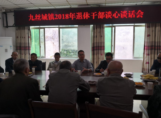 2018年10月17日,在九丝城镇会议室召开“退休干部谈心谈话会”,会上镇党委书记李绪向在座退休干部介绍九丝城镇目前工作开展情况,其后,各退休干部也就其工作开展情况积极进言献策,为九丝的发展添砖加瓦,谈话氛围温馨热烈。