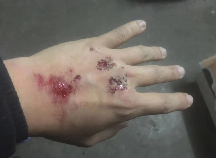 “我没事!快救火!救火要紧!”在战友们将其救出后,他又不顾伤势参与到救火队伍中。直至晚上11时许,大火扑灭,黄刚才在同事的搀扶下来到医院进行包扎。经医生检查才发现,黄刚身上多处受伤,最可怕的是他的手掌中的伤口,因为受伤后仍参与救火行动,大量土渣渗入其中,医生需要把伤口剪开进行清洗。在此过程中,为了不让周围同伴担心,黄刚依然强忍着钻心的痛苦安慰大家:“放心吧,我没事,还有后续工作要做,别为了我耽误时间……”