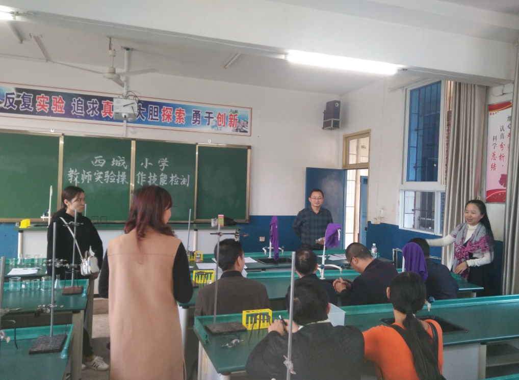 其次,我县在11月迎接四川省实验教学评估督查,学校抓住这一契机,狠抓科学教师业务培训,利用每天晚上的休息时间,把所有科学学科的兼职教师聚在一起,通过阅读课标、查阅教师用书、上网查资料等方式,对教师进行实验操作技能培训,大家互相探讨实验操作流程,罗列注意事项,记录实验收获,在忙碌中收获成长,科学教师何丽参加宜宾市小学科学教师实验操作技能大赛获得二等奖,在迎接县局的科学实验教学专项督查中学校也获得了较高评价。