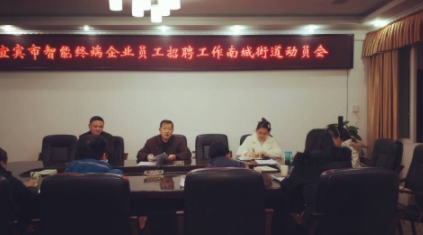四川新闻网宜宾11月27日讯(张洪文 陈照)为全力保障“宜宾市智能终端产业员工招聘”需求,确保全面完成员工招聘目标任务,。11月26日下午,南城街道召开了 “宜宾市智能终端产业员工招聘”工作启动会,街道党工委副书记、办事处主任李家远、办事处副主任、分管领导陈照、街道人社服务中心负责人、各社区主任、劳动保障员及协理员12人参会。 会上,街道人社服务中心负责人首先传达了“翠屏区智能终端企业员工招聘培训推进会”会议精神,领学了《宜宾市智能终端产业员工招聘培训支持政策》(宜府函【208】117号)文件。