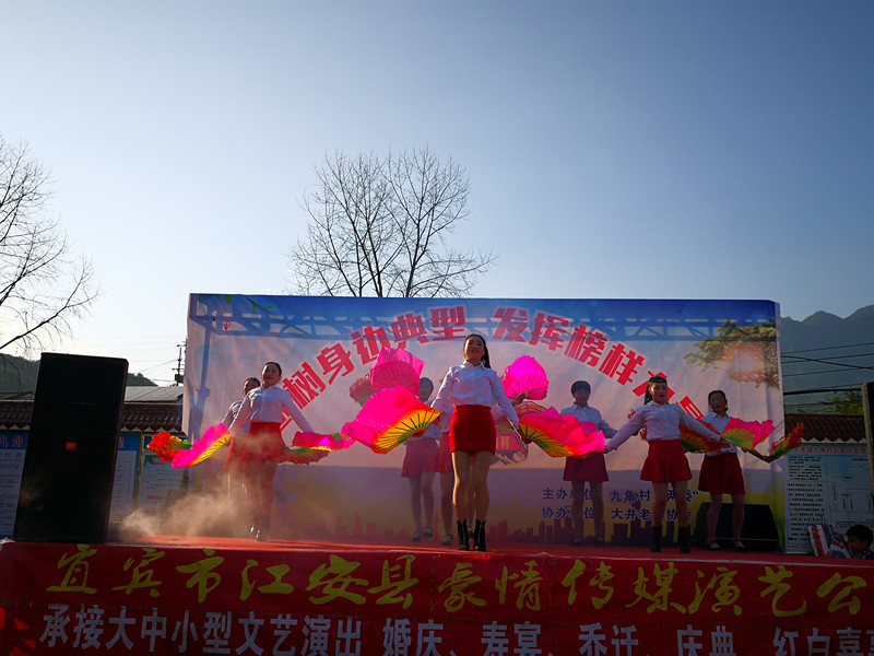 近20个节目丰富多彩,开场舞《恭喜你》对获奖群众表达了祝贺,小品《党建引我脱贫奔康》讲述了大井贫困户脱贫前后变化,表演唱《逛新城》逗得群众笑声不断。活动中分类进行了十轮表彰:“党员示范星”、“孝老爱亲星”、“和睦邻里星”、“敬业奉献星”、“助人为乐星”“诚实守信星”、“脱贫致富星”、“干事创业星”、“环境卫生星”、“平安卫士星”,主持人介绍了他们的事迹,台下嘉宾为53名先进典型颁发了荣誉证书一本、茶杯一个,同时对获得提名的初步人选发放了纪念品。节目结束后,群众自发主动上台展示广场舞,赢得群众阵阵掌声。村民周清雨很是感慨:“九角村从来没弄热闹过,能有今天这种好日子,大家都该感谢共产党!”他写下了“小康御席”打油诗一首,为祖国改革开放40周年献礼,委托现场由主持人进行了朗诵,受到在场党员群众一致赞扬。