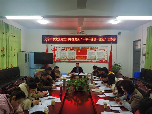 四川新闻网宜宾12月20日讯(罗丽) 12月19日下午,义合小学党支部召开2018年度党员“一年一评议一登记”工作会,党支部书记刘学良主持会议,全体党员和积极分子参加会议。
