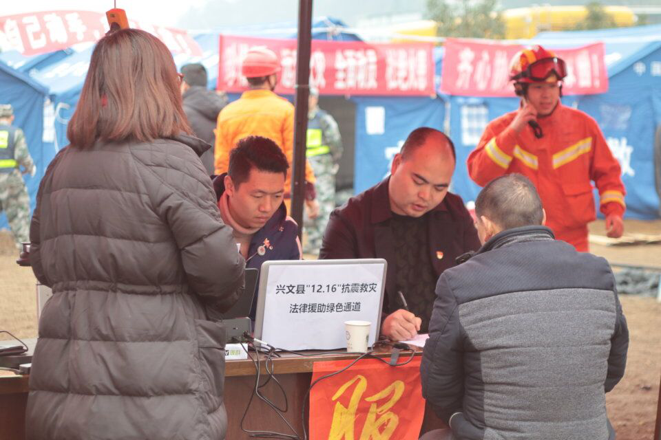 四川新闻网宜宾12月20日讯 12月16日,兴文县发生5.7级地震,震源深度12千米。灾情发生后,兴文县法律援助中心立即启动应急预案,第一时间深入到震中周家镇,及时为受灾群众开展现场法援援助。