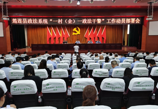 会上,县人民法院院长胡浩宣读了《筠连县政法系统开展“一村(企)一政法干警”工作实施方案》。县委常委、政法委书记贾圣君就如何开展“一村(企)一政法干警”工作提出了三点意见。一是在“统”字上下工夫,深化思想新认识。实施“一村(企)一政法干警”工作是夯实政法基层基础的重要举措,是创新推进基层治理现代化最坚实的力量支撑和最广阔的工作平台,在维护社会稳定、密切警民关系、提升群众平安满意度等方面都具有十分重要的意义。县政法各部门要统一思想认识,提升政治站位,切实将行动统一到“一村(企)一政法干警”工作上来,为推动经济持续健康发展和保持社会长期稳定提供法治保障。二是在“融”字上做文章,构建连促新格局。“一村(企)一政法干警”工作既要依靠政法系统创新推动,更要依靠各乡(镇)、各部门的大力支持。县政法各部门要牢固树立“一盘棋”思维,融汇各方力量,融合职能职责,融媒宣传报道,达成社会平安和谐共融目标。要着力实现政法系统“资源通融、内容兼融、宣传互融”新宣传新格局,打造筠连政法融媒体。三是在“实”字上出成绩,展现服务新成效。实施“一村(企)一政法干警”工作,派驻干警必须要保持务实工作作风,展现实干精神。领导小组要抓实工作考核,增强实际成效。要切实把政法业务工作延伸到最基层、落实到群众中去,努力解决实际困难和问题,为提升人民群众的安全感、满意度方面产生实效,为建设平安筠连法治筠连奠定坚实的基础。