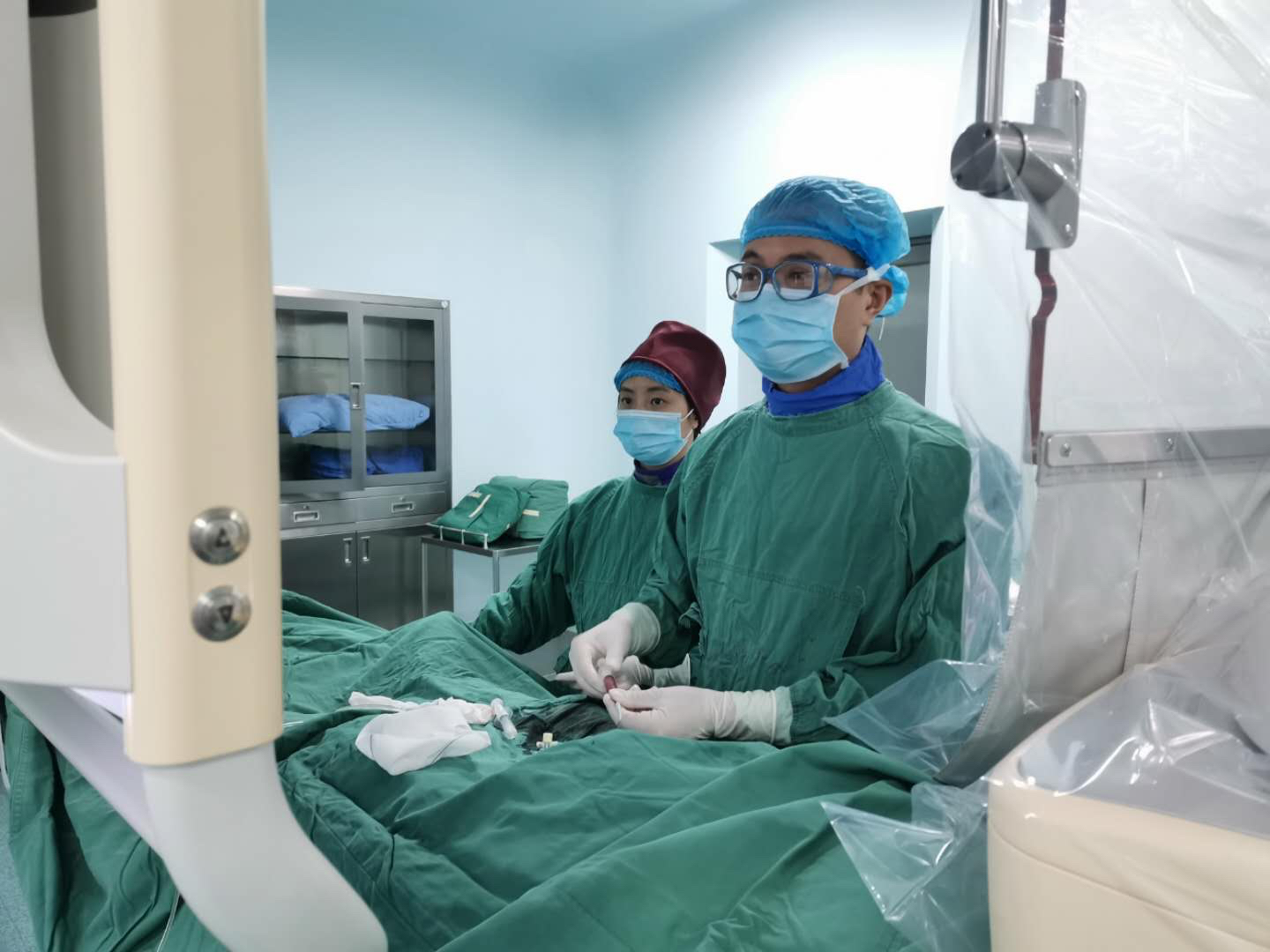 | 胡钧文副主任医师、张敏医师在介入术中 |