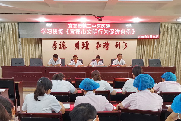 四川新闻网消息(毛卫锋)2020年是宜宾市夺取“全国文明城市”的决战决胜年,为了确保宜宾市顺利通过文明城市验收,为了更好落实市委、区委创卫决战决胜的各项工作部署, 7月16日上午,2020年宜宾市第二中医医院文明单位创建工作推进会举行,宜宾市第二中医医院党政领导班子、中层干部参加了会议。
