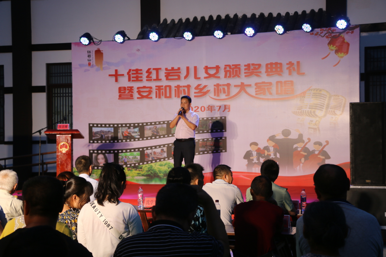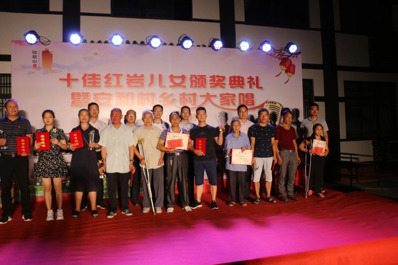 颁奖典礼由安和村两委组织和承办,胜天镇在家班子成员出席并为十二名“红岩十佳儿女”颁发奖杯、奖状、奖金,镇村干部、安和村以及附近村村民数百名人员参加。
