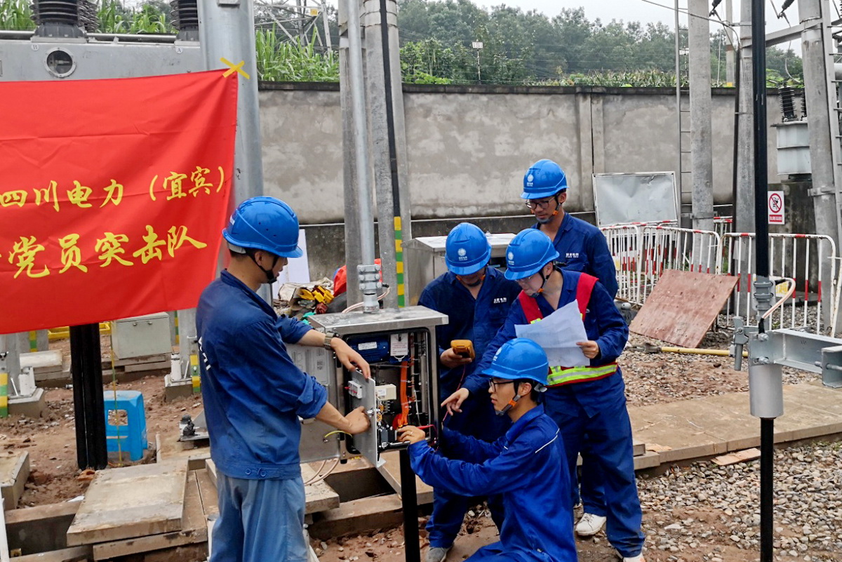 本次扩建工作时间紧、任务重,国网宜宾供电公司变电运检中心特别组织了电气试验、变电一次、变电二次等专业共产党员20余人组成突击队奔赴现场,抢时间、赶进度,加班加点作业。烈阳当空,队员们服着防暑降温药品,趁着工作间隙灌几口水,鏖战高温;阴雨连绵,队员搭起一块块木板作“雨棚”继续奋战;夜幕降临,队员们又点上一盏盏临时照明挑灯夜战。
