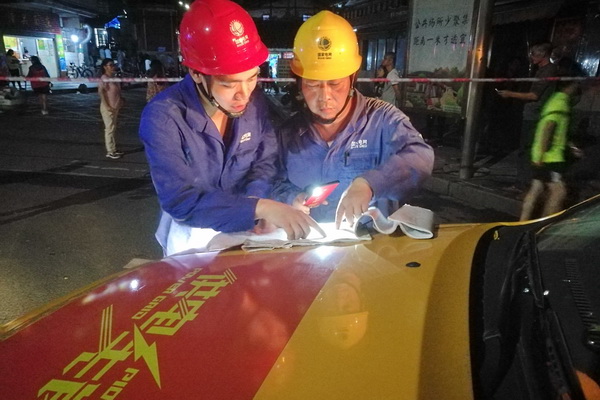 正在防汛保电的紧要关头,19日凌晨1时15分左右,位于滨江路银龙广场突发险情,靠翠柏大道一侧停车场大面积塌陷,25辆汽车下沉,地下电缆沟内四根高压电缆被压受损,造成新江II线沿江路支线跳闸停电,抢修人员顾不得一身的疲惫,火速赶往现场,对故障点进行隔离,连夜调整运行方式,快速实施了临时转供方案,于凌晨3点将故障清除,确保了塌陷区域内4条线路含医院、学校等重要用户近8000户的正常用电。