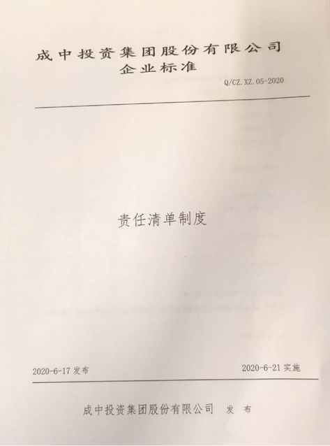 成中投资集团相关负责人介绍,在清单制发布之后,成中投资集团股份有限公司马上下发文件,做到全员参与,提升全员的清单制意识。岗位清单在业务活动场所进行公示,提醒单位内部工作人员按清单履职、按清单办事,年终总结述职时按清单进行表述,提高清单的内部使用效率。监管监督同时运行,不仅所有员工均按清单制履行职责,还能监督职能部门在运用清单存在问题,如处罚出现问题等,以便于各个岗位在具体操作时有章可循、张弛有度。(成中投资集团供图)
