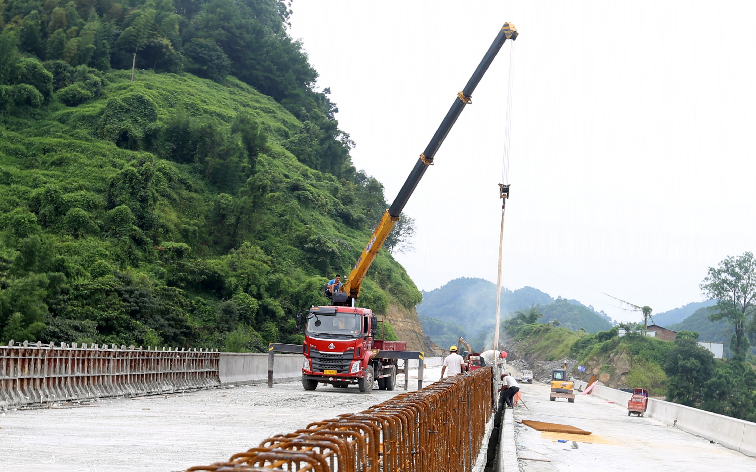 宜庆路(二期)叙州区段于2018年12月正式开工建设,本段总投资约为1.2亿元,起点为叙州区赵场街道芝麻村月亮组,终点为高县来复镇燕子村,线路长1.6km。主要工程量为路基挖方、防护挡墙、边坡防护等。目前,该项目已完成90%,下一步将进行路面工程和安全防控工程的施工。据该项目四工区生产经理路强介绍,制约工期的黄金塝大桥建设,由于地质原因与设计不符,进行了工程变更,工期滞后了两个月,为缩短工期现在两个桥台同时施工,计划9月10日完成0号桥台和1号桥台,9月15日梁板吊装,9月30日达到半幅通车,10月底将全线拉通。
