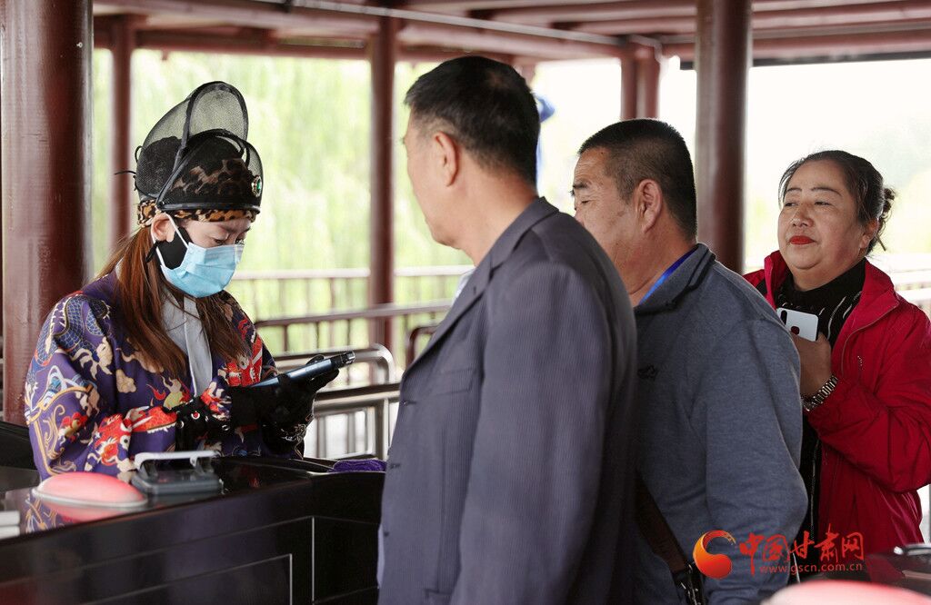 9月22日,记者在嘉峪关关城看到前来参观的游客络绎不绝,大家跟随汉服飘逸的讲解员沿着关城前行。在瓮城感受“瓮中捉鳖”的境遇,在关口倒换通关文牒寻求关照。一路上都能遇到穿着明朝服饰的工作人员,将人们带入大明风华的场景之中。